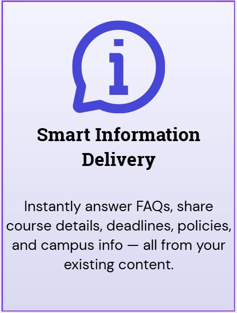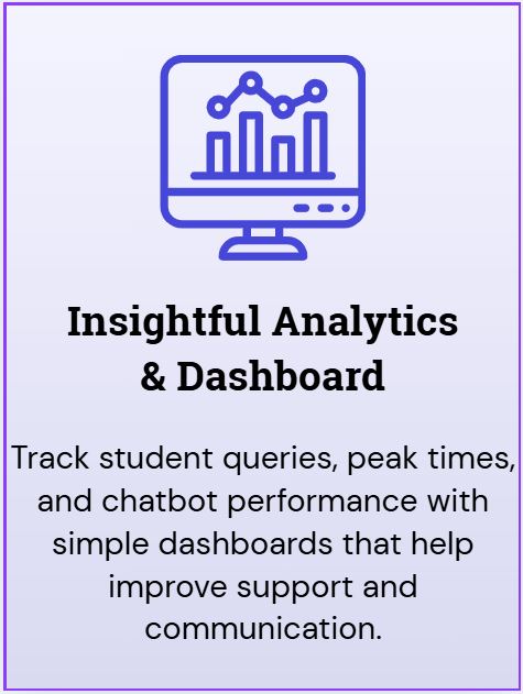 We train your chatbot using your academic resources, FAQs, policy documents, and institute-specific data — no coding required.