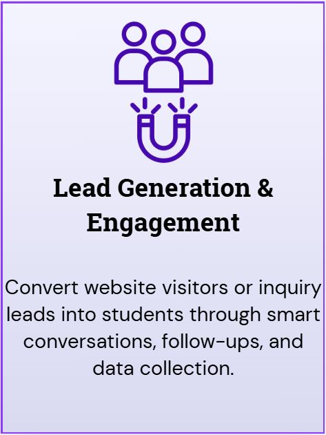 Convert more leads, reduce manual workload, and provide 24/7 academic support using AI-powered chatbots designed to scale and grow your coaching business.